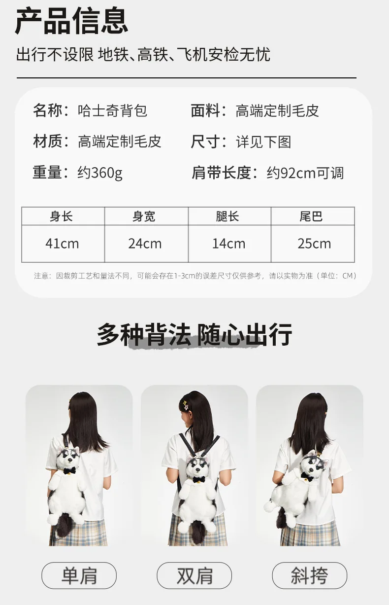 Cute Plush Lovely Husky Dog Backpack Kawaii School Bag Girls Boys Kindergarten Birthday Festival Gift